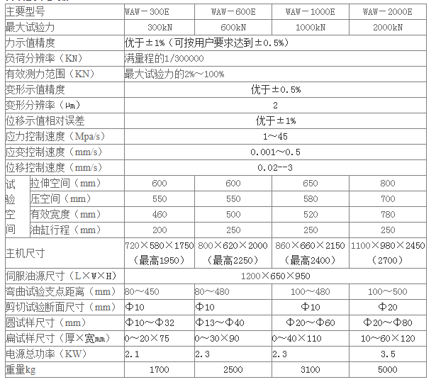 主要用途 微機控制電液伺服試驗機采用雙空間油缸下置結(jié)構(gòu)。該試驗機主要用于金屬材料的拉伸、壓縮、彎曲、剪切等試驗;可實現(xiàn)等速率加荷、等速率變形、等速率位移等試驗,并可在一次試驗中實現(xiàn)力、變形、位移三段控制,各控制之間可平滑轉(zhuǎn)換。各項技術(shù)參數(shù):