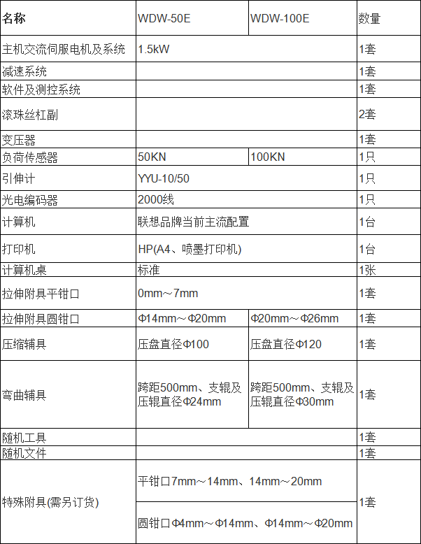 濟(jì)南時(shí)代試驗(yàn)機(jī)廠(chǎng)生產(chǎn)的該試驗(yàn)機(jī)采用雙空間門(mén)式結(jié)構(gòu),標(biāo)準(zhǔn)為上空間拉伸,下空間壓縮、彎曲,拉壓空間可相互轉(zhuǎn)換。本電子萬(wàn)能試驗(yàn)機(jī)主機(jī)部分由四根導(dǎo)向立柱、上橫梁、中橫梁、工作臺(tái)組成落地式框架,調(diào)速系統(tǒng)安裝在工作臺(tái)下部。由調(diào)速精度高、范圍寬、性能穩(wěn)定的日本松下交流伺服電機(jī)通過(guò)同步齒形帶減速系統(tǒng)帶動(dòng)滾珠絲杠副旋轉(zhuǎn),滾珠絲杠副驅(qū)動(dòng)中橫梁,帶動(dòng)拉伸輔具(或壓縮、彎曲等輔具)上下移動(dòng),實(shí)現(xiàn)試樣的加荷與卸載。該結(jié)構(gòu)保證機(jī)架有足夠的剛度,同時(shí)實(shí)現(xiàn)高效、平穩(wěn)傳動(dòng)。電子萬(wàn)能試驗(yàn)機(jī)主機(jī)主要零部件在加工中心進(jìn)行加工,保證了主機(jī)的精度。滾珠絲杠為E5級(jí)。